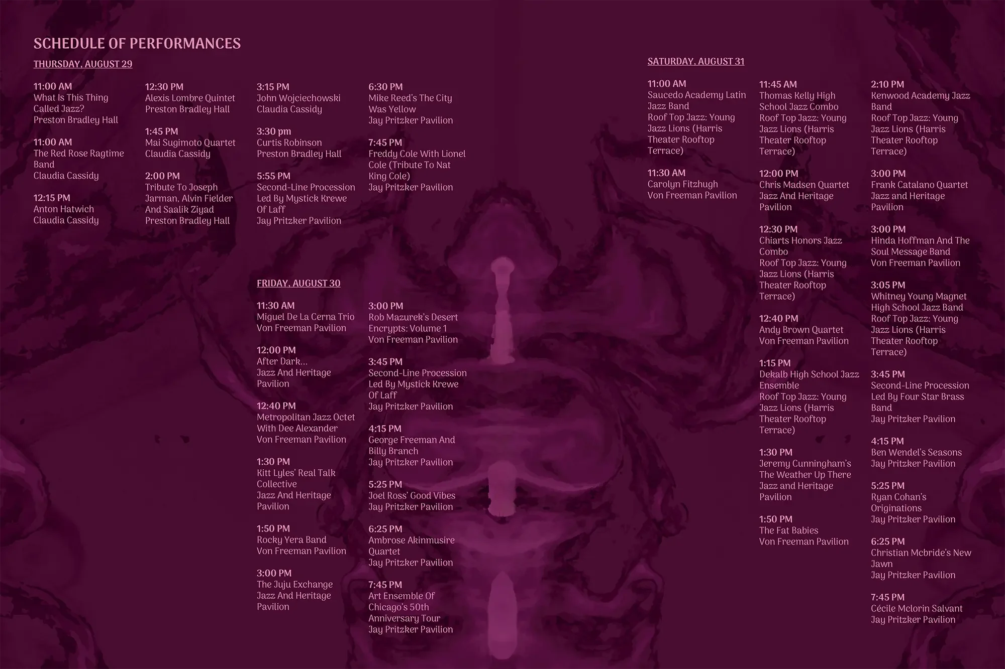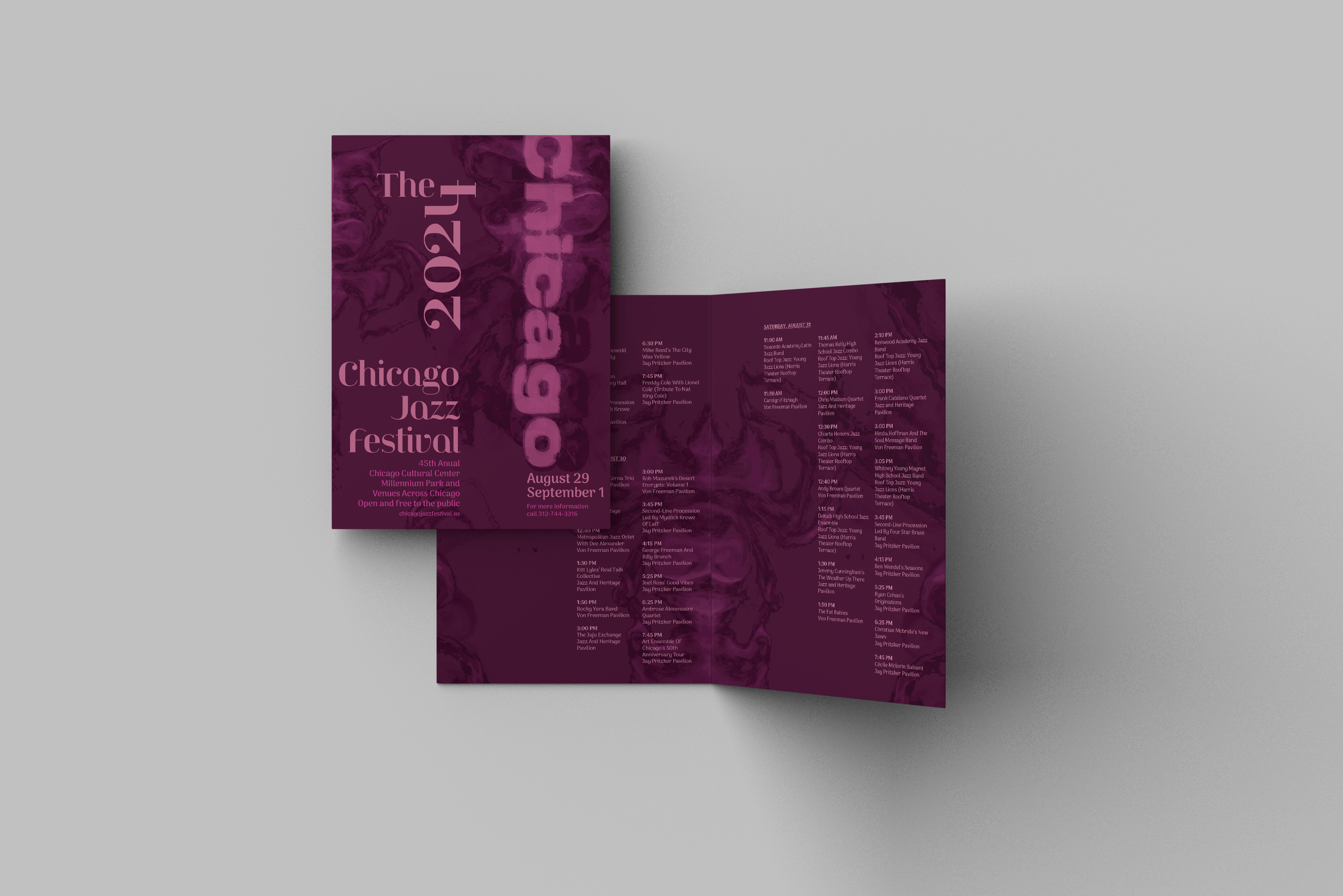After experimenting with the type, we were tasled to organize the information for the “Chicago Jazz Festival” into a poster and a inforamtive brochure.