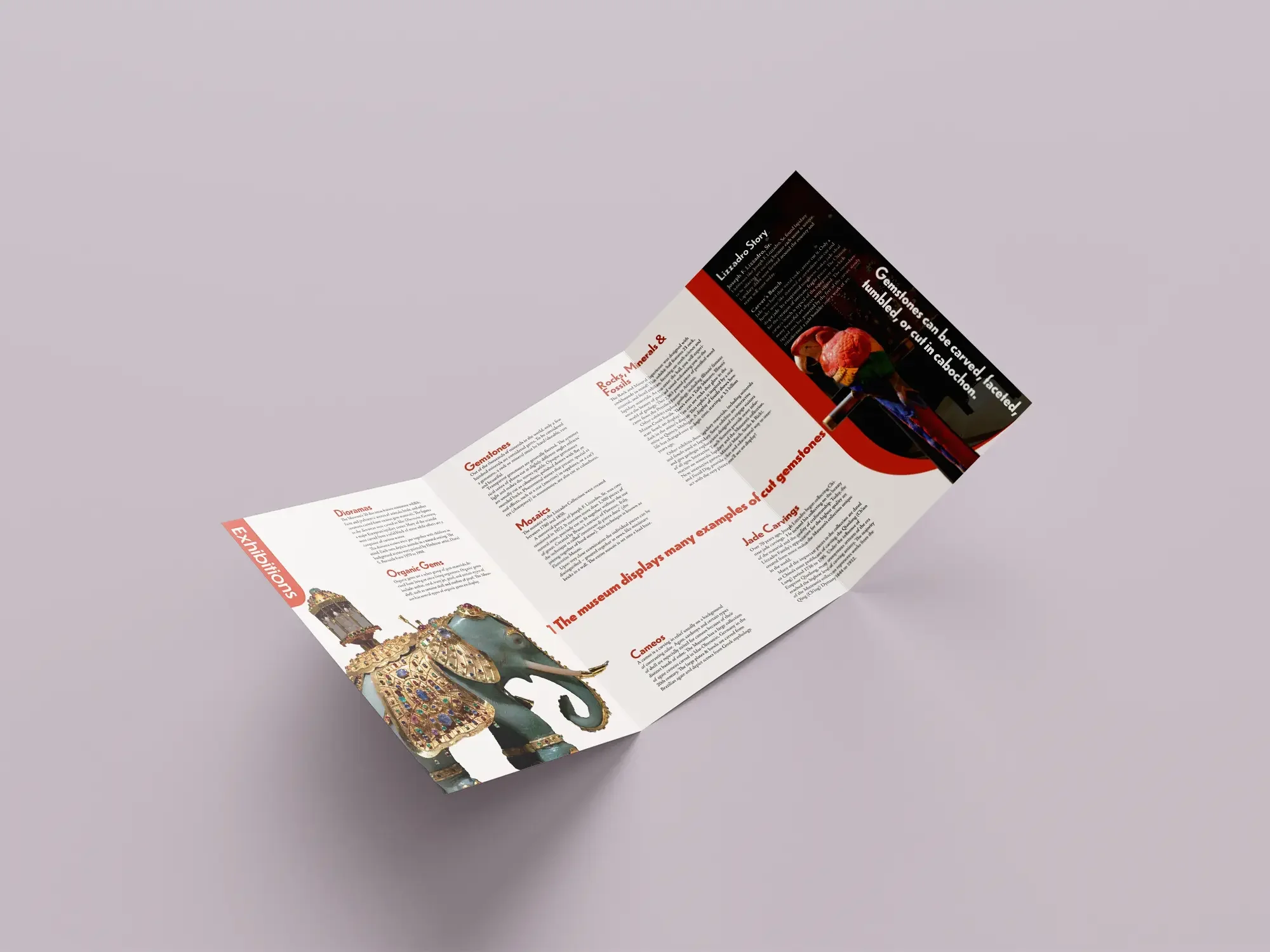 The trifold is an informational flyer about their displays and the significance of lapidary. I decided to keep it simple so the imagery speaks for itself.